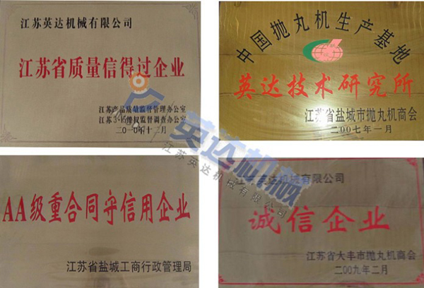 公司率先通過ISO9001:2008質(zhì)量管理體系認(rèn)證、ISO14001:2004環(huán)境管理體系認(rèn)證。擁有一支專業(yè)的技術(shù)團(tuán)隊(duì),先后取得了網(wǎng)帶通過式拋丸機(jī)、新型機(jī)械回收噴砂房、輥道通過式重鋼拋丸機(jī)等三十項(xiàng)產(chǎn)品專利和10項(xiàng)江蘇省高新技術(shù)產(chǎn)品。(注:各項(xiàng)產(chǎn)品專利及所有證書詳見企業(yè)官網(wǎng):http://www.ydzj.net/或阿里誠信檔案)
